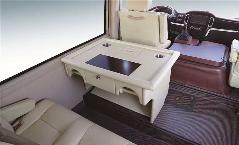新一代金旅考斯特,对家族经典设计再创新,打造出富有魅力的豪华内饰。全新乘用车化仪表台,采用上下分体设计,通过豪华的皮革,钢琴烤漆装饰板和磨砂铝饰,以及目之所及的精细缝线,精心打造豪华质感体验。