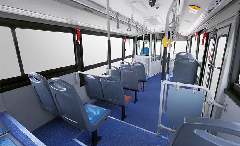 行业少有的6米级车型前中开门设计,前门处通道宽度达 838mm,确保乘客上下车更加快捷、有序。内饰引入了最新的CMF设计理念,内部空间宽敞明亮,色调简洁明快。特别选用的黑色防滑套扶手杆,冬季让站立区乘客握抓扶手的触感更好。此外,环境氛围照明系统,大视野侧窗玻璃,超大液晶显示屏等人性化配置带来更加舒适的乘坐体验。最大载客数可达38人,并有多种座椅状态可选,满足不同运营需求,创造更多价值。