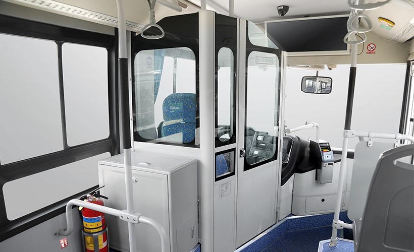 前挡视野上下边界达37度,远超国标要求,极大改善驾驶员视野,保障行车安全。全新开发的整体环抱式仪表台,车辆信息显示一目了然,按键操控触手可及。可选装带手机支付功能的多功能嵌入式投币机,方便司机观察投币情况。行业首创旋钮式换挡,同时采用驾驶区防护隔离设计,让司机工作更轻松、安全。全新设计悬架系统,结构紧凑,节省空间,行驶更平稳。前后悬架采用复合衬套,免润滑,同时可降低悬架系统噪音,极大降低维护成本。采用金旅新一代纯电驱动系统,匹配领先的整车控制与节能技术,单位载质量能量消耗量(Ekg)小于0.15,带来更加经济环保的运营效率。