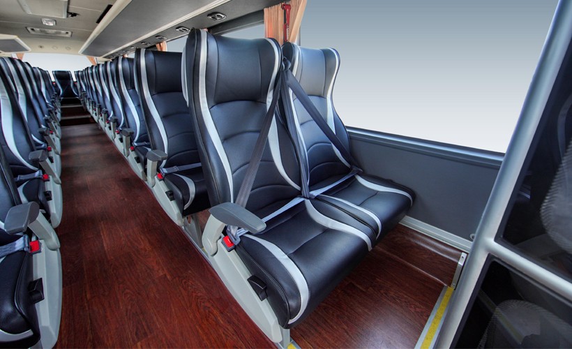 独立智慧驾驶座舱,配备气囊悬浮减震平衡系统司机椅,新款仪表台,多功能方向盘、电子换挡、全液晶显示屏等领先配置,驾控操作轻松自如; 车内高升级至2050mm, 车内过道无台阶,通过性更佳;全新抗菌座椅面料,豪华商务座椅,整车NVH静音技术及悉心调教的外摆式六气囊专用悬架系统,大幅提升乘坐的安全性和舒适性。